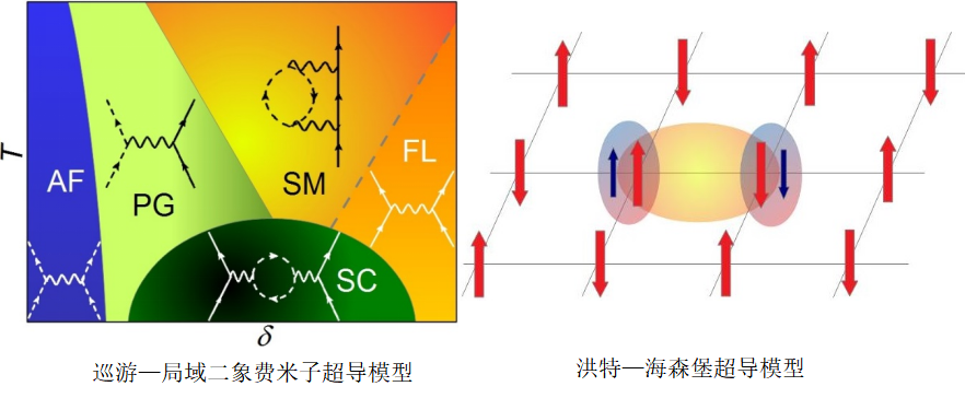 在铜氧化物超导中提出巡游—局域二象费米子超导模型,奇异金属可以理解为稀薄费米气体被反铁磁涨落重整化的产物,赝能隙的形成类似近藤绝缘体机制,氧上的载流子通过铜的反铁磁自旋涨落配对形成超导;在2019年发现的镍基超导中提出洪特—海森堡模型;发现洪特—海森堡模型还可以理解稀土金属的价态转变;在超导对磁激发的重整化效应研究中,揭示了费米子与玻色子相互作用可以产生新的玻色子或集体玻色模的一种机制;在谱函数随温度变化的超导KOsO中,首先提出非谐振光学声子配对电子的超导机制,把强耦合超导 Eliashberg 方程推广到可研究温度依赖的谱函数,并把爱因斯坦的固体比热模型扩展到描述频率依赖温度的声子模CV=CVE[1-dlnw(T)/dlnT];在方钴矿结构PrOsSb超导中提出重费米子中的多极激发配合声子的超导机制及其对导电电子质量的重整化;提出堆叠2维交替磁体可能产生超导,调解了交替磁涨落利于形成Cooper对自旋单态而费米面结构不利于其形成的矛盾;提出d-波超导中强烈改变费米面附近态密度的非磁性杂质诱导的共振束缚态对磁化率的贡献等效为一局域磁矩;还研究了超导,纳米碳管和单层石墨的杂质电磁效应,高温超导的层间隧穿谱等;探索非中心对称超导/绝缘体/p-波超导的约瑟夫森效应。