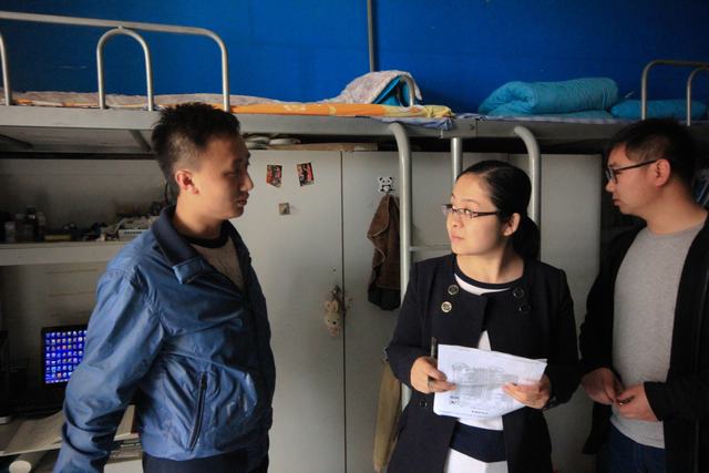 老师和学生干部分成两组,分别对12级和13级的男女生宿舍整体卫生和可能存在的安全隐患进行了仔细检查,并重点询问和了解了大四学生的就业考研情况、大三学生的学业生活情况。考评小组对每个宿舍进行了细致的评比,并从宿舍卫生、宿舍安全和宿舍文化三个方面进行打分。同学们整体表现良好,都能够自觉遵守学校及学院对于宿舍的管理条约。设计别具匠心和整洁干净的宿舍,给检查宿舍的老师同学都留下了极好的印象。但也有个别宿舍存在东西摆放过于杂乱,存在安全隐患,及学习氛围较差等情况。