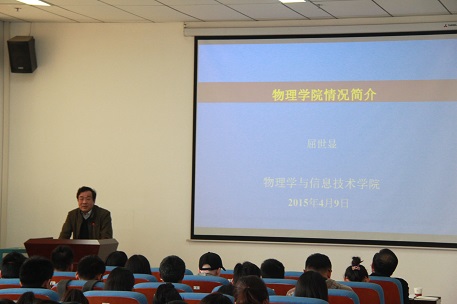 动员会上,院长屈世显教授首先就当前物理行业的就业形势、就业的意义、就业问题与就业建议以及为什么考研、考研有什么优势等方面向同学们做了深入浅出的介绍和分析。并从学院的导师队伍、研究方向、实验设备、科研成果等方面做了详细的介绍,鼓励大家积极报考本校。就当下同学们应该如何正确处理考研、就业与学习三者之间的关系的问题,他着重强调了专业知识的重要性,提醒全体同学一定要扎实掌握专业课知识。