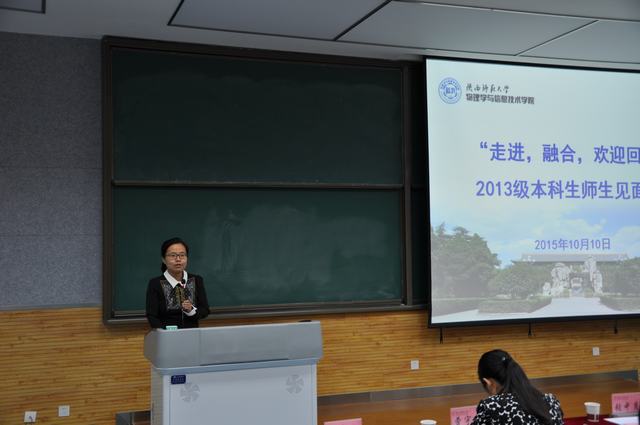 为了欢迎2013级本科生回归学院,2015年10月10日下午,公海5500线路检测在文渊楼4101教室成功举办了“走进,融合,欢迎回家”师生见面会。学院党委书记曹沛涛、教学副院长李永放、科研副院长张中月、党委副书记曹宇巍、教师代表尹峰教授、2013级本科生辅导员周静和2013级全体本科生出席了本次会议。会议由周静主持。