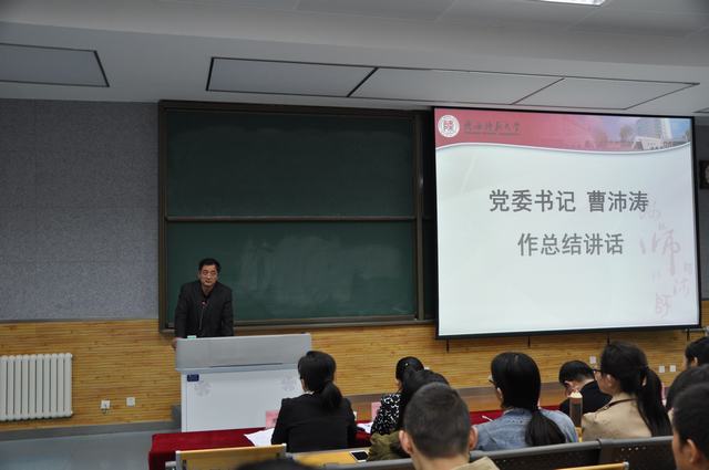 大会最后,党委书记曹沛涛作了总结讲话。曹书记向同学介绍了学院悠久历史和发展现状,并为同学提出了三点希望,一是希望同学能把理论和实践结合到最好;二是希望同学充分利用实验室、教室、阅览室、寝室和学术报告厅“四室一厅”的宝贵机会,获取知识资源;三是希望同学积极参加各类学科竞赛,在竞赛中提升职业技能和素养。