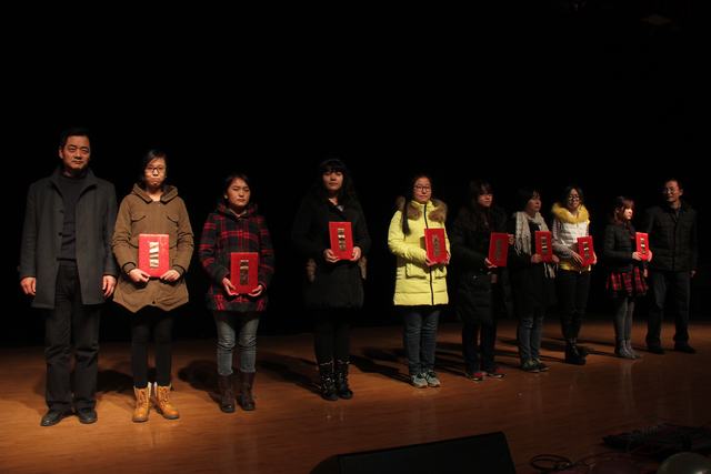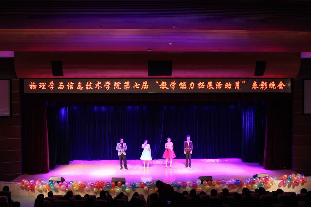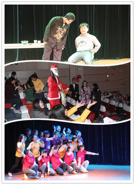 晚会伴随着舞者们一段优美的开场舞《库姆孜之情》拉开了序幕。晚会伊始,主持人介绍了出席本次晚会的领导嘉宾。接下来,一段精彩的活动月总结视频的回放,大家回顾了本学期开展的各项学生活动,现场的每位同学都兴致高昂。随后,颁奖环节有序进行,学院领导先后为在“教学能力拓展活动月”、球类运动会中涌现出的优秀个人和集体以及学生会先进工作者颁发了获奖证书。在两部分颁奖环节中,穿插着同学们带来的精彩节目。来自不同班的四名同学带来的奥运励志歌曲《站起来》瞬间点燃了全场的氛围;物理3班带来的具有社会讽刺意味的相声《救,不救》则笑点不断;由即兴乐队组合带来的歌曲串烧使在场的同学如痴如醉,鼓掌连连。大会还加入了“圣诞老人发糖果”环节,随着音乐符的跳动与糖果的赠送,全场气氛达到了高潮。