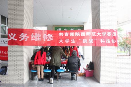 2015年3月24日,由我院学生会科技部和大学生挑战科技协会共同承办的学以致用,服务师生——学习雷锋精神之义务维修活动在我校长安校区阳光苑一层举行。义务维修队由我院学生会科技部成员、大学生挑战科技协会成员以及我院学生志愿者组成。