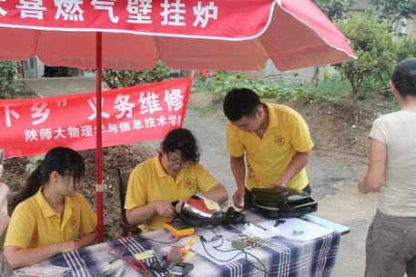 此外,为满足农村实际需要,结合自身专业特色,实践小组开展了 “青春建功·科技支农”义务维修活动。活动持续三天。同学们为村民维修电热壶,电饭煲等家用电器,在发挥自身专业特长的同时,理论结合实践,受到了村民们的一致好评。