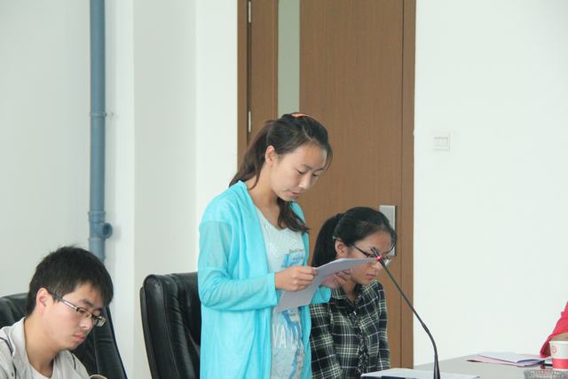 会议伊始,周静表达了对12级本科生及14级研究生党支部成立的热烈祝贺。接着,她向大家介绍了学生党支部的基本情况以及干部的推荐选拔过程,并宣读了党支部干部名单。随后,2012级本科生党支部书记孙殊贤及2014级研究生党支部书记高菊阳发言,主要向大家介绍了党支部本学期的主要工作,具体内容主要包括支部建设、理论学习、开展主题活动情况等,表达了新一届党支部积极进取,不断进步的决心,誓要持久保持先锋模范带头作用,在新形势下积极成为党的建设的主力军。最后,学院党委副书记曹宇巍对全体党员提出了五点要求和希望:希望全体党员不断加强自身理论学习,提高理论素养;注重自身专业学习,全面提升综合素质;加强纪律约束,坚决服从组织安排;增强大局观念,主动协助老师开展工作;充分挖掘支部潜力,发挥支部战斗堡垒作用。