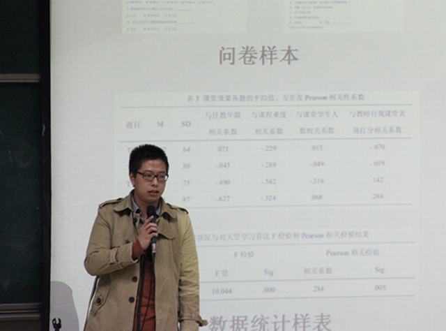 会议首先由2010级本科生辅导员刘耿为大家分析前期问卷调查的结果,并提出从学生入手改善学习风气;尽早帮助学生明确未来发展目标;丰富课余生活,举办与学业有关的活动;在学生内部、学生和教师之间开展互帮互助活动;提升教师教学意识,提高教学水平;优化课程设置,加强监管力度,改善学业警示制度等六项可行性建议。同时,刘老师为大家进一步解读我校学业警示制度,使同学们对此项制度有了更加具体的了解。