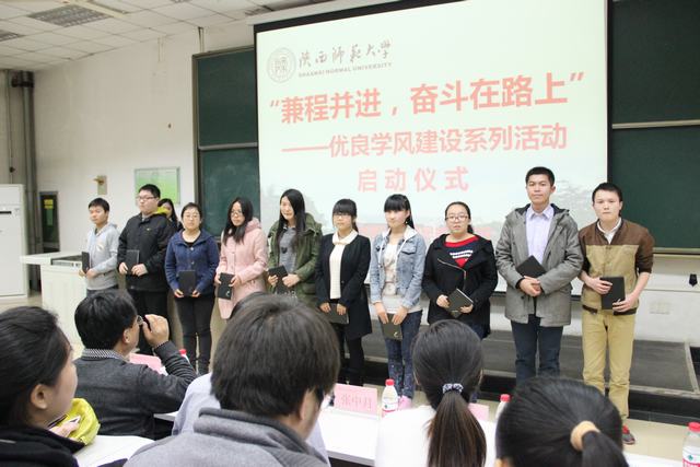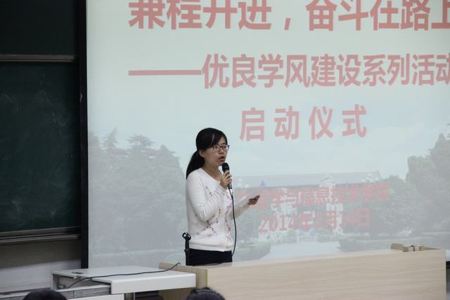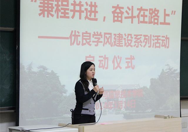 3月14日晚7:00,我院在文渊楼202教室举行了本科三年级和研究生一年级全体学生参加的“兼程并进,奋斗在路上”——优良学风建设系列活动启动仪式。校党委学工部部长、学生处处长刘建军,教务处副处长刘先锋,校团委代晓飞,学院党委书记曹沛涛,教学副院长李永放,科研副院长张中月,本科生辅导员周静、刘耿及学院2011级本科生、2013级研究生参加了启动仪式。会议由学院团委书记曹宇巍主持。