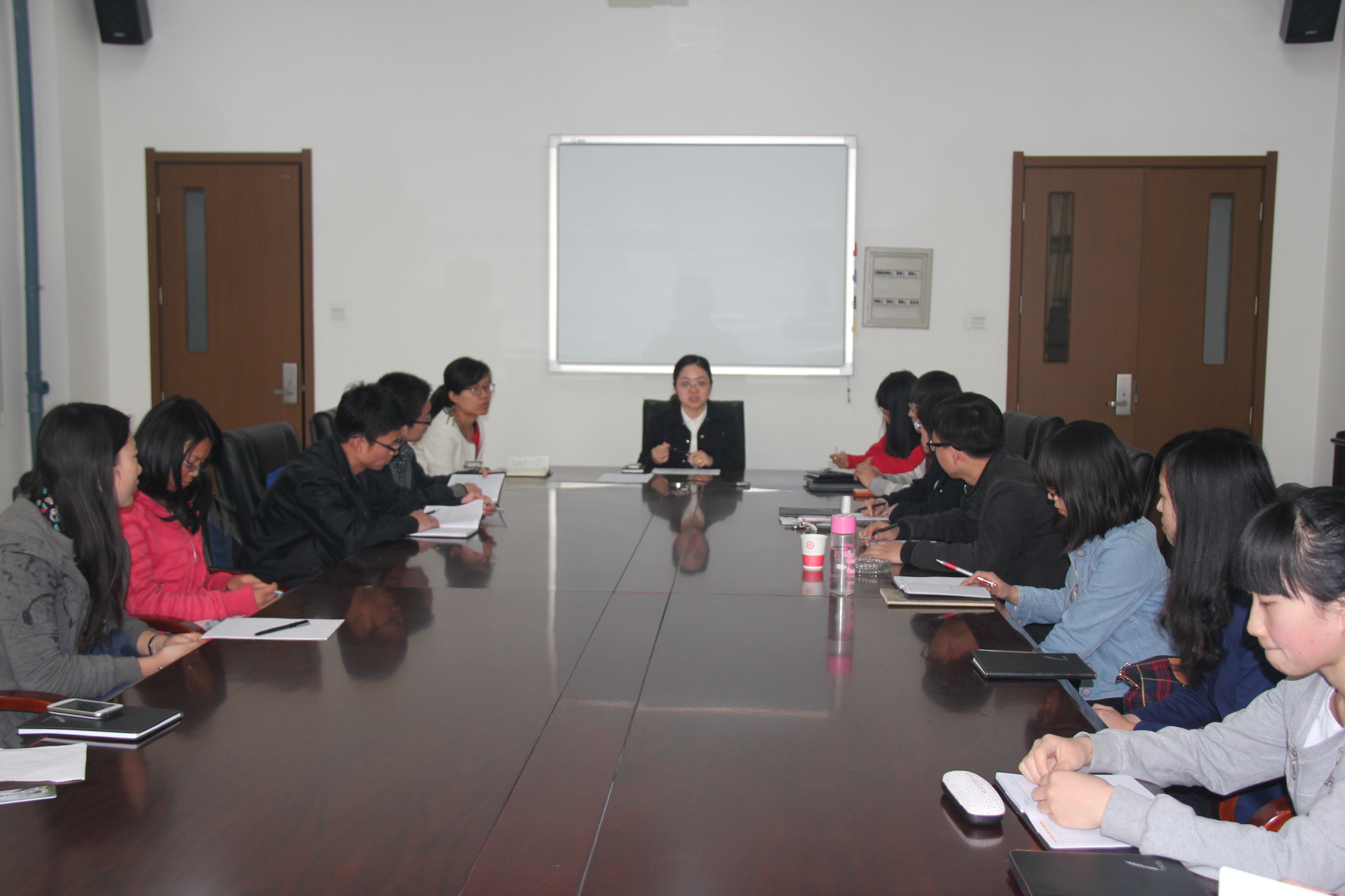2014年3月18日上午,我院在致知楼三层会议室召开了“兼程并进,奋斗在路上”——优良学风建设系列活动之“文明学风”进寝室——建立党员示范岗、监督岗工作部署会议。学院团委书记曹宇巍,2011级本科生辅导员周静,2011级全体本科生党员及部分学生干部参加了此次会议。会议由学院团委书记曹宇巍主持。