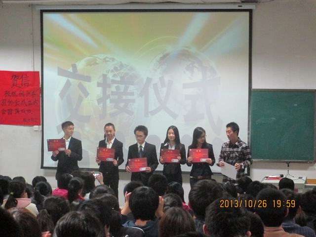大会在一首优美欢快的吉他弹唱中拉开了帷幕,本届会长及各部门负责人依次上台发言,为新成员们介绍了“骄阳”的历史发展和本学年的主要工作计划。随后,新部员代表上台发言,他们表示,所有新成员将会在接下来的一年时间里努力加油,壮大骄阳。一首动人的《仰望星空》后,骄阳人迎来了庄严肃穆的交接仪式。最后,宋伟琪的民族舞蹈以及夏义杰的魔术更是将本次大会推向高潮,大会在同学们热情的掌声中拉下了帷幕。