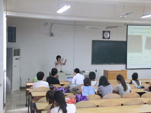 会上,赵新元首先对程茜副教授表示了欢迎。紧接着,程茜副教授对同济大学声学所进行了详细的介绍。同济大学声学研究所是1980年由国家教委批准,成立至今已30年。声学所现有室内声学室、环境声学室、噪声与振动控制室、超声一室和超声二室五个研究室,上汽--同济汽车工程中心、上轮--同济轮胎噪声工程技术中心两个工程技术中心和IOS激光联合实验室;其科研方向有现代信息声学、工程声学以及其他相关内容。在互动环节中,同学们向老师询问了声学所研究生招考的相关要求,老师也耐心的向同学们一一说明,为我院非师范学生考研提供了很多的信息和帮助。最后,我院师生再次向程茜副教授表示了衷心的感谢。