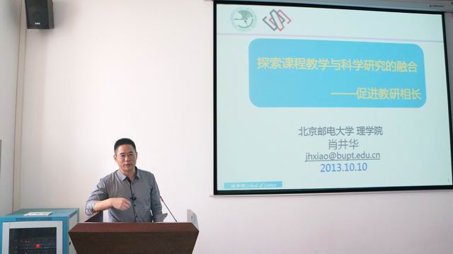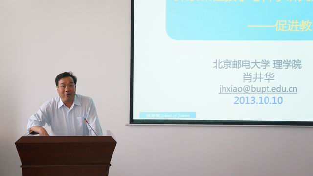 10月11日下午,第十七期“恒元物理学讲座”在致知楼物理学院六层学术报告厅举行。北京邮电大学理学院肖井华教授应邀作了题为《探索课程教学与科学研究的融合——促进教研相长》的学术报告,学院师生逾百人参加了报告会。报告会由屈世显教授主持。
