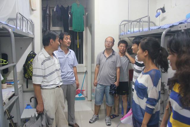 2012年8月31日晚7点,我院党委书记曹沛涛,行政副院长卢永智,团委书记曹宇巍及本科生辅导员周静、姚明礼、林雪对刚搬进新宿舍的2010级学生进行了走访慰问,同时学院学生会主要负责人对宿舍进行了新学期首次卫生与安全检查。