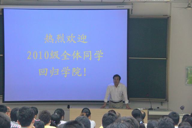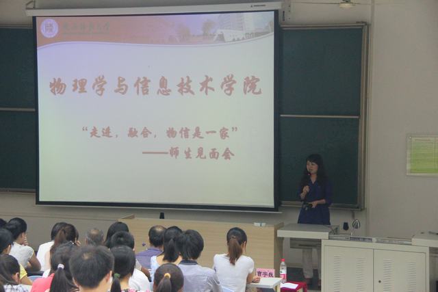 2012年9月6日晚7点,由我院团委学生会发起的“心贴心关怀行动”之“走进,融合,物信是一家”——师生见面会在长安校区文渊楼201教室举办。学院院长屈世显、党委书记曹沛涛、行政副院长卢永智、教学副院长李永放、实验副院长辛云宏、团委书记曹宇巍及10级本科生辅导员姚明礼、林雪出席了见面会。会议由团委书记曹宇巍主持。