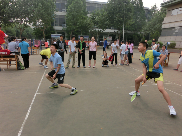 2013年5月4日至5日,我院骄阳乒羽协会在雁塔校区羽毛球场、乒乓球场和体育馆内分别举行了“骄阳杯”乒羽球混合团体友谊赛。全校共有8个乒乓球队和21个羽毛球队报名参加比赛。骄阳协会的各部室成员也到场参与各项工作安排,协助比赛顺利进行。