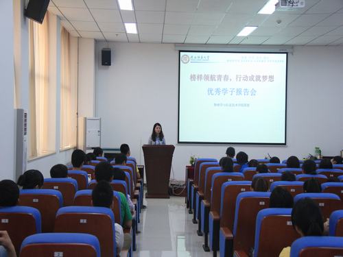 2013年5月20日,我院在长安校区致知楼六层报告厅举行了“榜样领航青春,行动成就梦想”优秀学子报告会。学院2009级五位优秀学子应邀担任主讲,会议由学院团委书记曹宇巍主持。