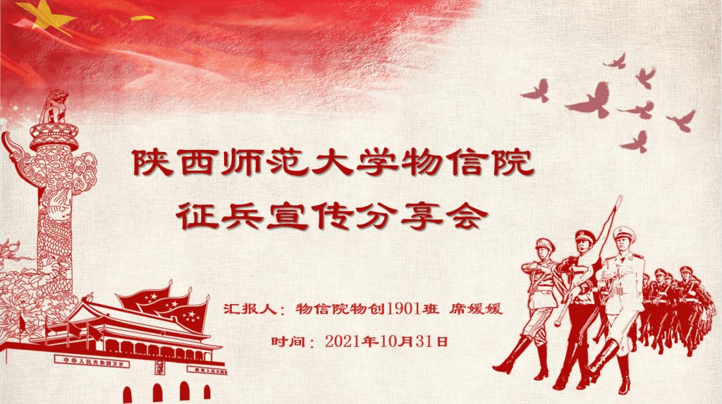 为激发我院2019级学子参军热情,营造参军报国的氛围,10月31日晚,公海5500线路检测于腾讯会议线上举行征兵政策宣讲会暨军旅生活分享会。会议邀请原中国人民解放军96946部队42分队战士、2019级物(新)1班席媛媛;原武警湖南总队常德支队战士、2019级电子学与信息技术专业1班林嘉尧;原武警内蒙古总队乌海支队战士、2019级物理学3班王林巍分享军旅生活。会议由2019级本科生辅导员高菀婧主持。
