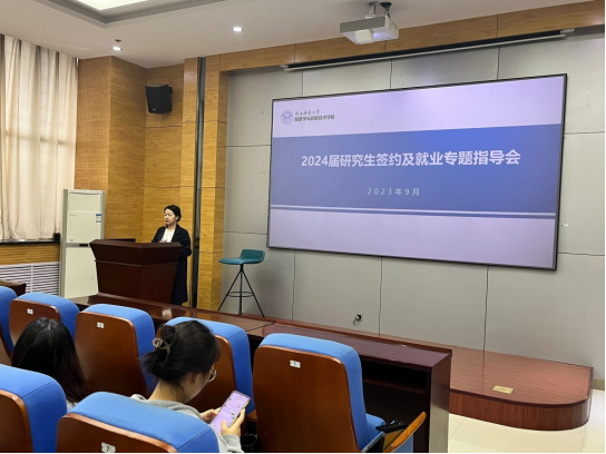 指导会上,研究生辅导员林恒进给毕业生分析了当前就业形势,讲解了毕业生签约方式、签约流程、就业协议书及就业推荐表使用方法,强调了求职和签约中的注意事项,要求学生在签约前与用人单位进行充分有效沟通,慎重签约、诚信就业。同时,她还提醒同学们在求职过程中既要积极进取主动出击,又要提高警惕安全求职,抓住当前就业黄金期,争取尽早落实就业单位。