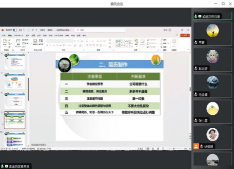 两位校友结合自身的求职经历,就企业招聘形势、岗位需求、个人发展需求、简历制作、笔试面试准备、面谈等环节为学院学生做了细致的指导,建议同学们要充分认识自身优劣势,尽量补齐短板、发挥优势,确立人职匹配的求职目标,面对不同求职单位,要在深入了解对方单位的前提下有针对性准备个人简历及面试面容,提高自己的求职成功率。