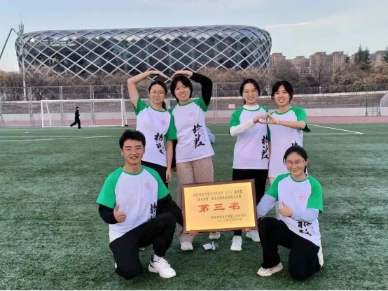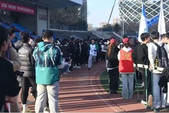 12月8日下午,比赛正式开始,学院老师莅临现场为选手加油打气,志愿者为运动健儿提供各种保证支持,在运动健儿的努力下,物信院成功取得第三名的好成绩,用时一小时八分十秒。