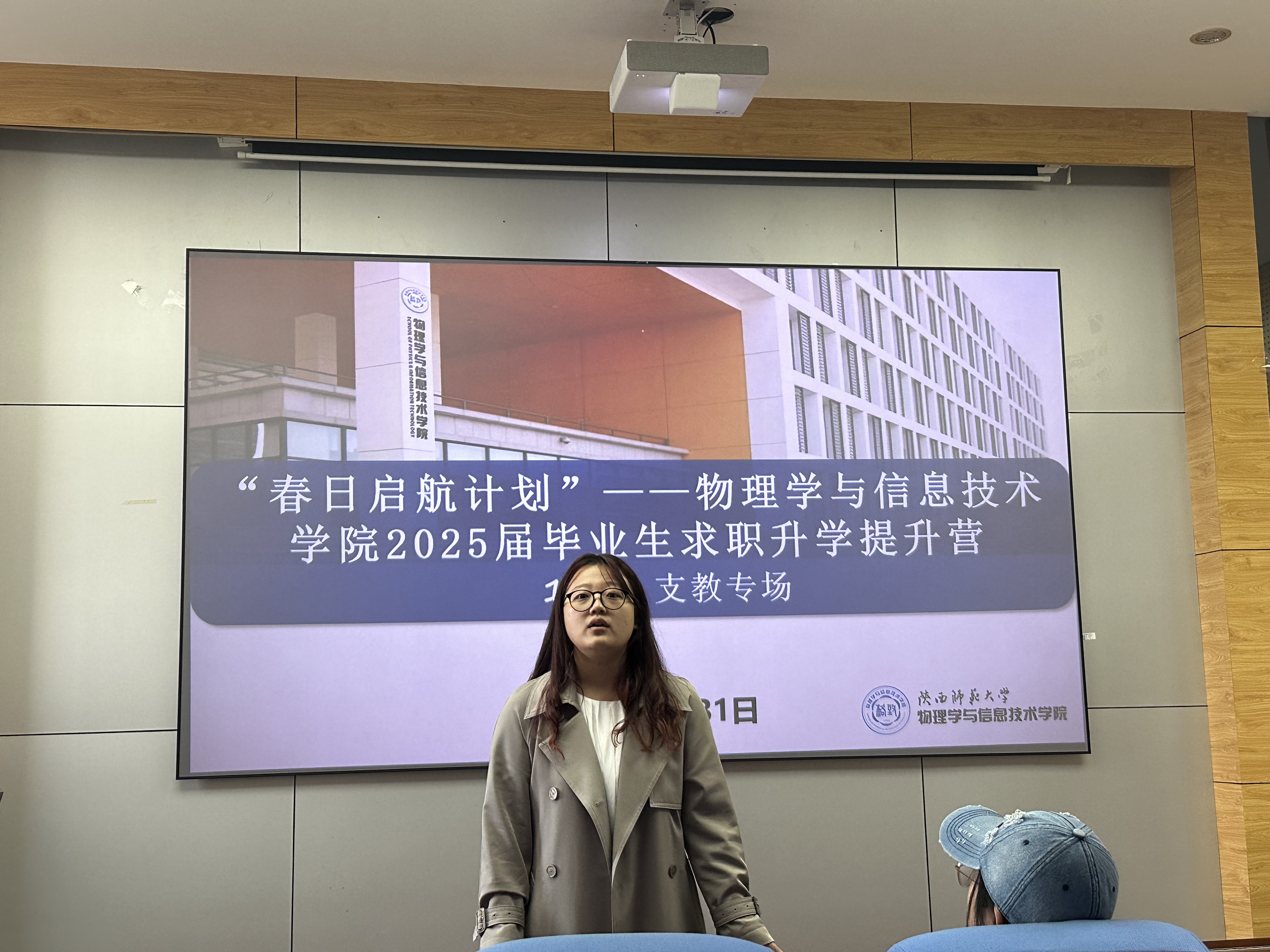 一年春作首,奋斗正当时。为加强学院学生升学就业指导工作,引导学生合理分析、早做规划、积极筹备,促进2025届毕业生高质量充分就业,3月31日,公海5500线路检测在致知楼3624举办“1+3”、研究生支教团报考经验分享会。本次分享会邀请学校研究生支教团成员王星辰、张静蕾,“2+3”学生辅导员高菀婧作经验分享。