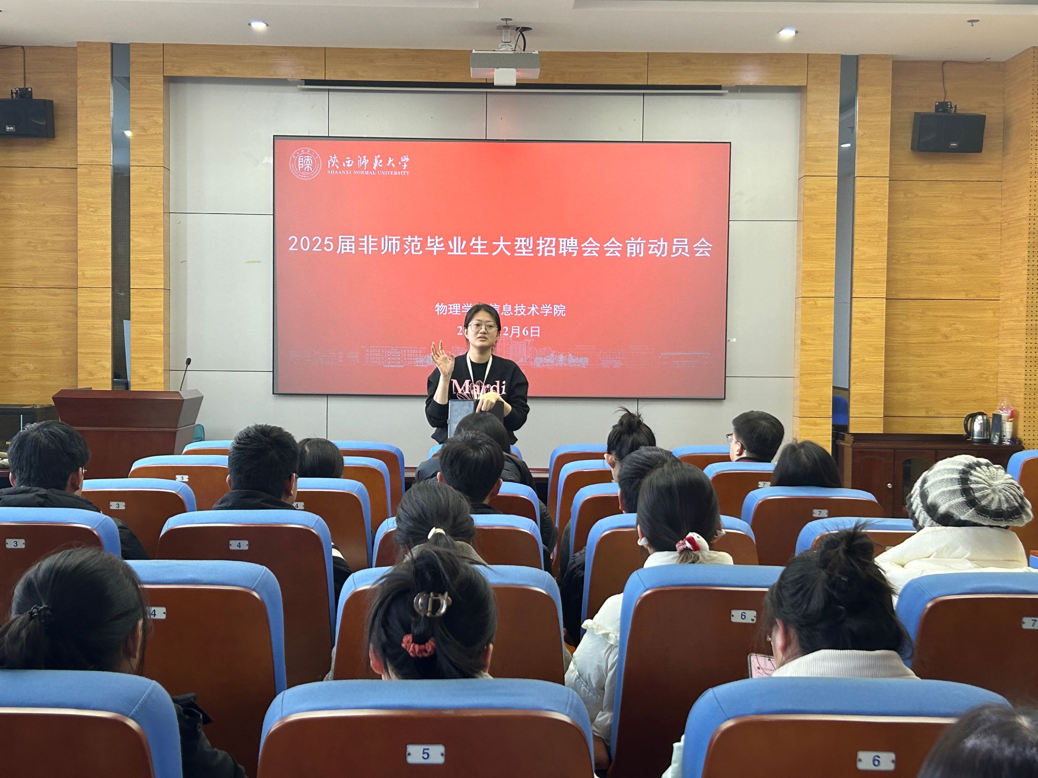 会上,辅导员高菀婧首先指出召开此次会议的必要性与重要性,介绍了此次大型招聘会来校单位的基本情况,鼓励同学们积极前往投递简历。接着围绕就业形势、就业市场特点与参会学生做了交流,并叮嘱毕业生结合自身情况合理定位,关注就业信息,抓住时机,果断决策。她还强调了就业准备的重要性,鼓励同学们明确求职目标,积极参与招聘活动,抓住本次大型招聘会的机遇。最后叮嘱同学们要提前做好心理准备,积极准备面试,并且对到会的每一位学生都进行了简历指导及岗位推荐,帮助同学们提升求职竞争力。