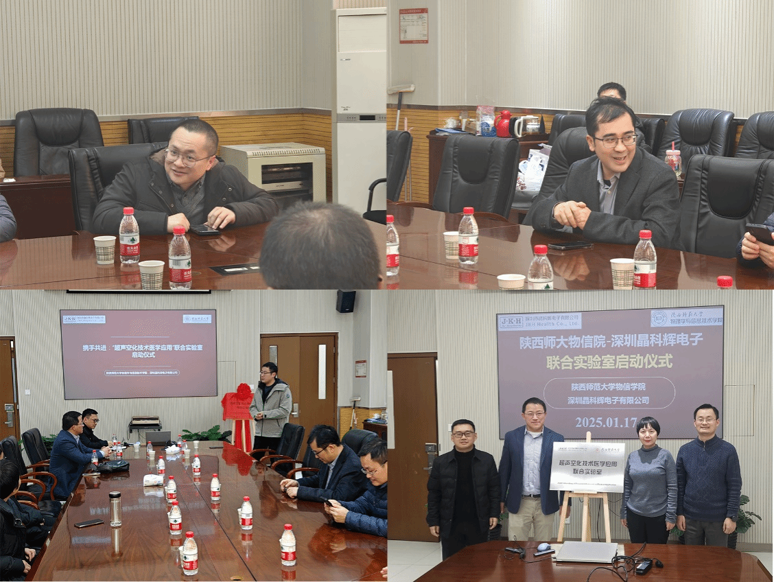 2025年1月17日, “超声空化技术医学应用”校企联合实验室的揭牌仪式在公海贵宾会5500iii长安校区举行。该实验室由公海5500线路检测和深圳市晶科辉电子有限公司共同成立,是国内首个聚焦于超声空化技术在肿瘤治疗等医学领域应用的校企联合实验室。深圳市晶科辉电子公司是已成立二十多年的医疗器械企业,是具国际视野和国际布局的国家高新技术企业。其主营的低频设备、冷疗设备和超声治疗设备等产品已取得了中国CFDA、美国FDA、欧洲医疗CE等多国医疗器械认证,同时获得国内外100余项产品专利,在超声医疗器械领域有着突出的产品研发、生产和销售能力。我校公海5500线路检测声学研究所和原子与分子物理研究所在超声换能器设备研制、超声空化过程的物理机制、以及材料的微观结构机制等方面具有深厚的研究基础。两个单位依托联合实验室达成深度合作,双方强强联合、优势互补、协同共进,必将开辟超声空化技术在肿瘤治疗等医学领域应用的新篇章。
