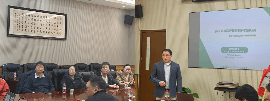 启动仪式上,深圳市晶科辉电子有限公司代表戴全钦博士做了题为《高尖超声医疗设备的开发和应用》的主题报告。他详细介绍了超声空化技术的最新研究成果,在国际医学领域的应用现状,以及深圳市晶科辉电子有限公司在医疗设备研发方面的最新进展。戴全钦博士指出,超声空化技术作为一种新兴的医学治疗手段,具有无创、精准、快速、安全等显著优势,此次校企合作将充分发挥双方在理论研究与实践应用方面的优势,加速超声空化技术的产业化进程。与会的朱刚强教授、高健智教授、谢小涛教授和王成会教授等各位专家成员也纷纷高度评价了联合实验室成立的重要意义,并对后续联合实验室的具体任务和工作进行了细致的讨论。