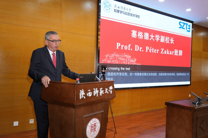 九月长安,秋色潋滟。2025年9月5日,公海5500线路检测隆重举行与匈牙利塞格德大学合作举办的电子信息科学与技术专业本科中外合作办学项目新生开学典礼。公海贵宾会5500iii党委常委、副校长董治宝,塞格德大学副校长Prof. Dr. Péter Zakar,塞格德大学校长代表、中国事务部主任曹正银,公海贵宾会5500iii党委常委、公海5500线路检测院长李贵安,公海贵宾会5500iii校长助理、党委校长办公室主任袁一芳及学校相关党政职能部门负责人出席典礼。学院党政班子成员、项目全体新生、教师代表及家长代表参加了典礼。典礼由公海5500线路检测教学副院长高健智主持。