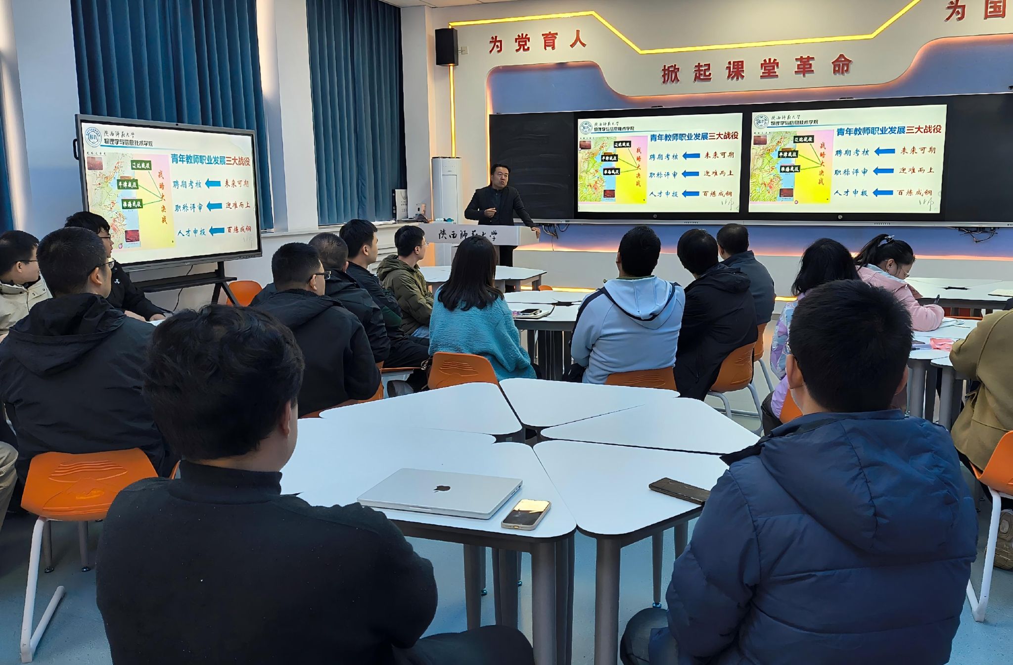 主讲人张正龙教授结合自身经验,从教育教学与科学研究两方面分享,他现场展示课程设计案例,着重强调思政元素融入课堂的方法与重要性,同时还针对科研项目开展、基金申报等,为青年教师提供了实用指导。主讲人黄育红教授聚焦高校教师育人职责,强调要关心关爱学生,在教学过程中要根据学生反馈调整教学策略、提升课堂质量,并详细介绍了指导学生竞赛的有效方法,为青年教师提供了可借鉴的实践经验。