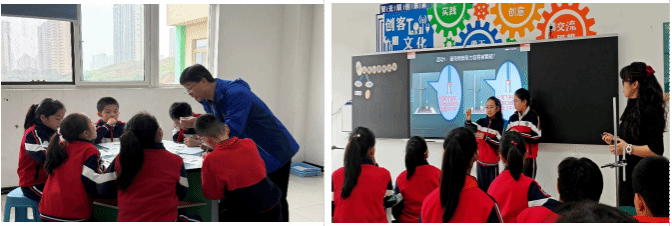 随后,同学们分组观摩了小学五年级科学课《蛋壳与薄壳结构》与三年级语文课《望洞庭》。科学课上,教师通过实验演示阐释仿生学原理;语文课堂则以诗画结合的方式展现古诗意境,两节课均体现了博雅小学“以学生为中心”的先进教学范式。