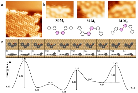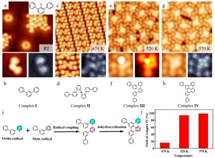 李青教授团队联合国内外科研团队,首次在超高真空条件下实验证实了Ag(111) 表面的持久自由基效应,并基于该效应实现了超过 99% 选择性的分子间自由基交叉偶联反应。研究团队以 2-碘-1,3-二苯基苯(ITP)为模型分子,在 Ag(111) 表面通过逐步退火诱导脱卤与自由基迁移。借助键分辨扫描隧道显微镜(Bond-Resolved STM, BR-STM),研究者在单键尺度上直接捕获并解析了反应前体、关键中间体及最终产物的结构演化过程。