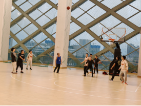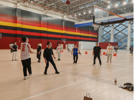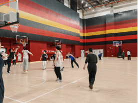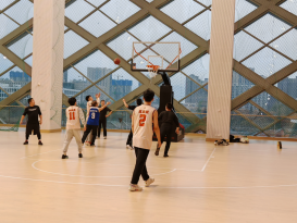 赛场上,师生们迅速进入状态,展现出极高的竞技热情与协作精神。教职工队员凭借娴熟的控球技巧、稳定的投篮节奏占据优势,时而精准传球,时而奋力抢断;学生队员则以灵活的跑位、迅猛的反击不甘示弱,双方你来我往,比分交替上升。