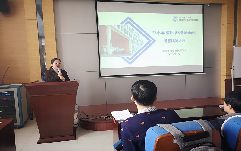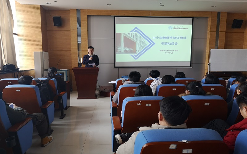 1月3日中午,公海5500线路检测在致知楼3623报告厅召开了全国中小学教师资格证面试动员会,近150名参加考试的学生参加。学院党委副书记曹宇巍、研究生辅导员吴乐参加会议,会议由2016级本科生辅导员林恒进主持。