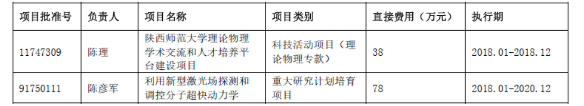 近日,接国家自然科学基金委员会通知,我院新增2项国家自然科学基金项目,分别是理论物理专款项目1项和重大研究计划培育项目1项, 至此,我院2017年共获批14项国家自然科学基金项目,资助直接经费1240万元,资助经费历年最高。这是学院、科研团队和教师个人共同努力的结果。