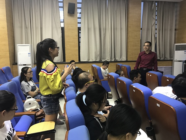 讲座分为两部分,从浙江高考改革讲到中学课堂教学设计,第一部分蒋老师针对新高考和教学改革方案的整体思路、改革困惑以及新特点,结合浙江教改实践进行了深入探讨和经验分享,并提出“学习目标是促进核心素养落地的关键因素和有效抓手,应指向核心素养。”从而促进学生“有知识、展能力、化品格、显素养”的全面发展。第二部分秦老师精选中学物理教材中“法拉第的发现”“大气的压强”“带电粒子在云强磁场中的运动”以及“自由落体运动”四个典型的课堂教学设计案例,采用说课形式详细阐述设计思路,提出在进行课堂教学设计时应从学生视角出发,关注学生的思想,体现课程本身逻辑性,运用先化难为简,再逐步增加难度的设计方式,强调课堂教学设计要立足学生生活实际,培养学生独立思考的能力。讲座最后同学们就自己关心以及在教学设计中遇到的问题与老师进行了深入交流。