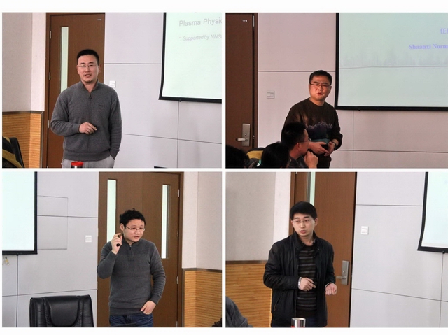 在考察活动的学术报告阶段,我校理论物理学科的王新刚教授、王圣军副教授、张文超副教授和“复杂性科学”交叉学科平台的任维教授分别做了题为“复杂网络中的同步斑图”、“随机共振及编码、耦合系统中同步、随机行走与临界态”、“高能质子-质子碰撞下的末态粒子横动量谱标度行为”、“神经细胞的分岔”的学术报告,汇报了该学科的近期科研进展。