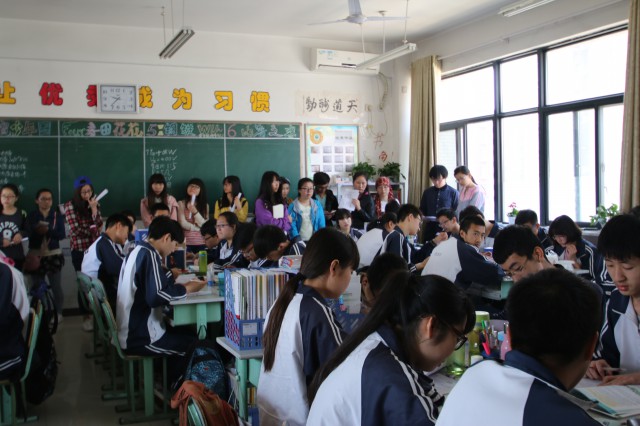 早晨9点整,我校学生乘坐校车到达奥林匹克花园学校,该校教科研中心主任毛翼龙老师热情迎接我校到访学生,他向学生们简要介绍了该校的课改情况,随后学生们在毛翼龙主任及相关教师的陪同下进入教室观课。奥林匹克花园学校的课堂没有传统课堂的“排排坐”,而是将学生们分为若干个学习小组;课堂上老师没有传统上的讲授,而是引导学生积极思考和探索;课堂上老师的板书和讲授很少,更多的是学生的展示;学生个个精神饱满,积极参与各个教学环节……