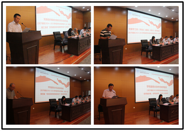 会议在学院过去一年学生工作回顾的视频中拉开序幕。党委组织部副处级组织员闫文浩宣读了《关于表彰2014-2015学年度学生党支部先进个人及“读出真知、报汇启迪”党员读报活动先进集体和先进个人的决定》;党委学工部副部长曲洪刚宣读《关于表彰2014-2015学年度学生先进集体和先进个人的决定》;学院副院长辛云宏宣读了《关于表彰2014-2015学年度学风示范集体、先进个人及第四届“综合实验技能拓展活动月”获奖选手的决定》;学院副院长张中月宣读了《关于表彰2015年学校春季体育运动会优秀组织者、优秀运动员、先进个人的决定》。与会领导和嘉宾为获奖学生代表和集体颁发了荣誉证书。