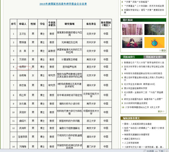 近日,我院96届校友、复旦大学电子工程系博士生导师他得安教授的《医学超声检测(批准号:11525416)》项目获得国家自然科学基金委员会发布的2015年杰出青年基金资助项目,引起声学界的广泛关注和赞誉。