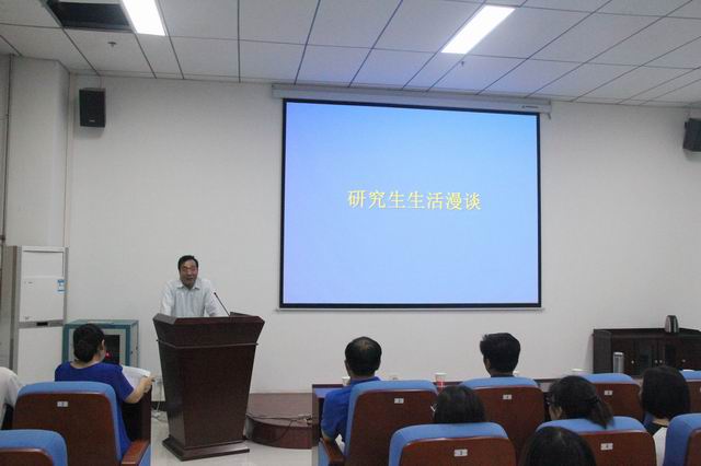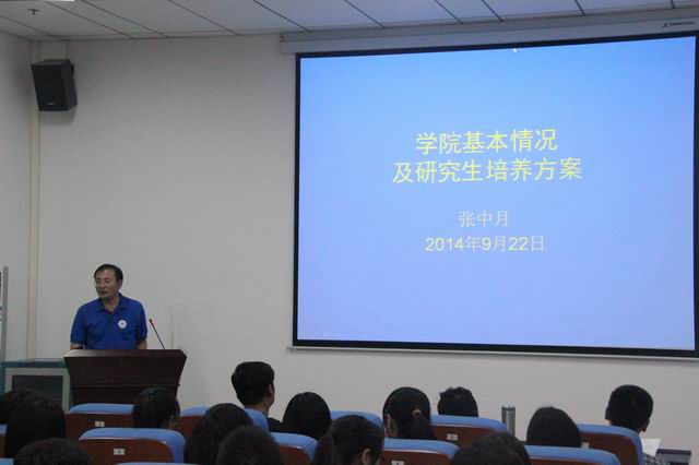 会议开始,副院长张中月向2014级研究生详细介绍了学院的基本情况以及研究生培养方案,并解释了什么是导师负责制,以及在导师负责制下的师生关系等。研究生导师代表陈彦军用简练的语言为同学们如何度过研究生期间的学习、生活提出了宝贵的建议。刘玉龙同学代表全体新生表态:要认真学习,专心科研,为自己为师大增光添彩。随后,院长屈世显作总结讲话,他首先代表学院全体师生向2014级研究生表示热烈欢迎,为大家解读了何为大学精神,勉励大家要勤于“学、行、思”,针对如何做好研究生期间的科研工作分享了自己的经验,要求大家一定要严格遵守学术规范和学术道德。