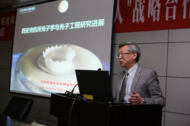 签署仪式后,赵卫所长为我校师生作了题为“西安光学精密机械研究所光子学和光子工程研究进展”的精彩报告,报告中赵所长介绍了西安光机所的科研优势、科研方向、实验设备条件,以及科研成果转化、科技企业的发展策略和成绩。