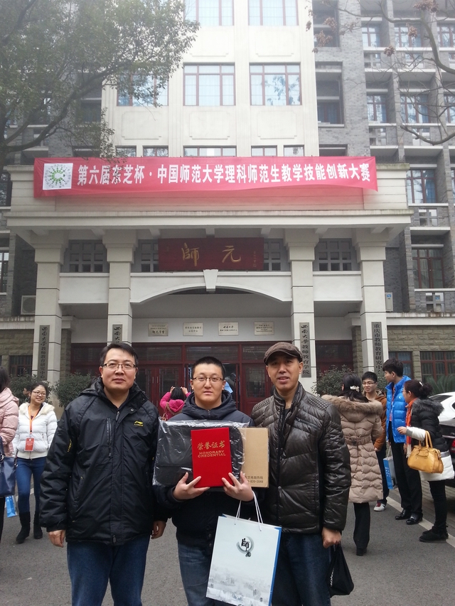 2015年1月10日-13日,第六届“东芝杯中国师范大学理科师范生教学技能创新大赛”总决赛在西南大学成功举办。在此次比赛中,我院2011级学生董勇获得物理组三等奖.