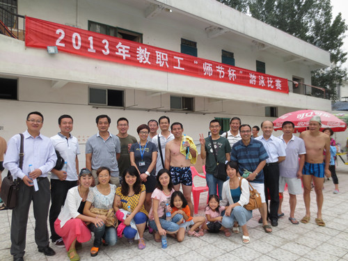9月7日上午,校工会在雁塔校区游泳池举办了我校2013年教职工“师节杯”游泳比赛。曹沛涛书记带领由黄晓峰、王新刚、张中月、李继胜、刘蓉、曹宇巍、刘茜茹老师组成的代表队,在比赛中获得佳绩,夺得团体总分第一名和优秀组织奖。