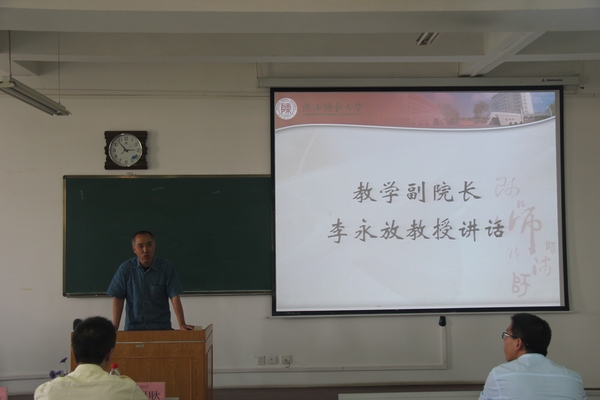 会上,周静详细介绍了举办此次“师范生教学能力拓展活动月”的重要意义和具体流程。她讲到,学院第六届“师范生教学能力拓展活动月”共分为三个阶段,即活动宣传阶段、活动实施阶段和总结表彰阶段,具体活动安排包括师范生教学能力拓展专题讲座、竞赛和结业考试。希望各班级高度重视,精心组织,能够有计划、有组织的协助学生会共同办好此次活动,为学生教师技能的提升搭建平台。同时也对参加活动月的同学提出了相关要求,即按时上课、认真听讲,为今后更好的从事物理教学工作奠定理论基础;积极参与,互相学习,为顺利实习和就业积累经验。2013届学生会主席胡棋宣读了活动倡议书,倡议同学们能够努力学习专业知识,提高专业技能,坚定理想,立志成才,培养高尚的道德情操,立志奉献自我,服务社会,不断提高自身综合素质。参赛选手代表席靖发言表示,学院举办“师范生教学能力拓展活动月”迎合了同学们锻炼培养自身教学能力的需求,所有参赛选手必将积极准备、认真参赛并严格遵守活动月的各项要求。最后,教学副院长李永放发表讲话。他介绍了作为一名合格的教师应当具备的基本素养和能力,强调了开展“师范生教学能力拓展活动月”对师范生的重要性,希望同学们能够积极参与,收获经验,提高自己的实战教学技能,并向学院献言献策,努力把活动办的更好,同时预祝学院第六届“师范生教学能力拓展活动月”取得圆满成功。