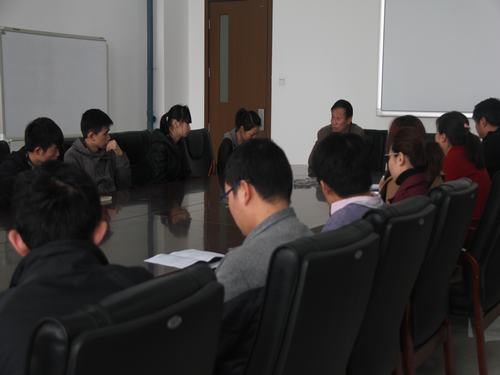 2013年3月15日上午10点,我院2013届非师范毕业生就业座谈会在学院三层会议室召开。学院党委书记曹沛涛、行政副院长卢永智、辅导员周静以及2013届未就业非师范毕业生共同出席了座谈会。