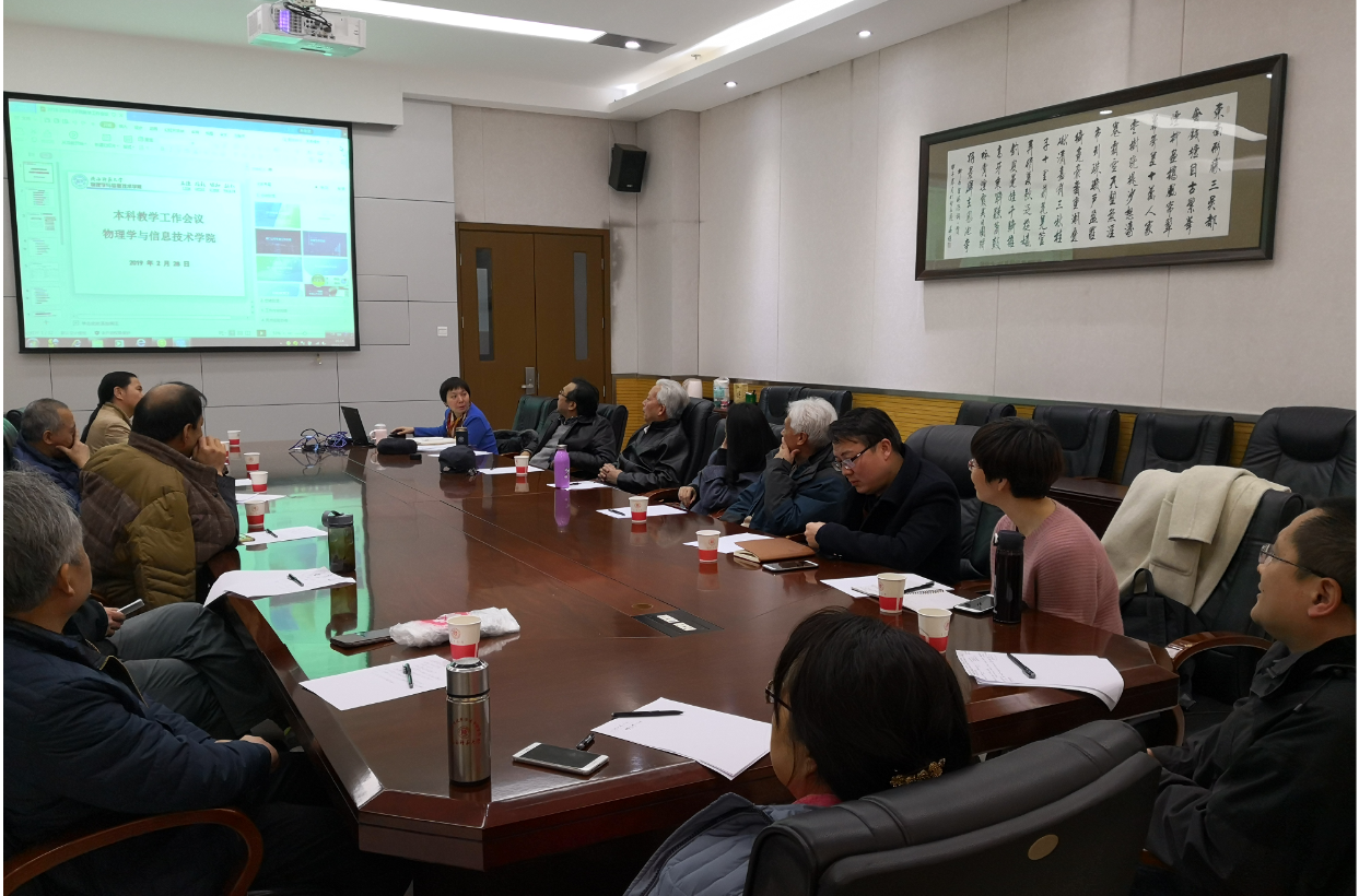 会上,屈世显院长首先做了讲话,物理学院历来重视本科教学工作,在本科教学方面具有良好的传统。屈院长肯定了2018年教学委员会和督导工作小组的工作,并对2019年本科教学工作提出要求。王成会副院长结合2019年学校本科教学工作要点任务对新学期学院本科教学工作安排做了详细部署。本学期学院将围绕教育思想大讨论和师范专业认证两项中心工作,教学项目申报、学生各项比赛活动安排、课程组建设等重点工作进行开展。王院长还重点介绍了师范专业认证的背景、工作要求、工作重点和难点,并征求参会教师意见。