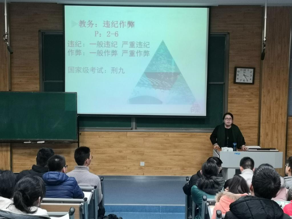 副院长王成会总结发言。她指出,19级新生将面临大学生活中的第一次期末考试,要理解大学考试和高中考试之间的区别,大学考试专业性和阶段性较强,要以平常心对待,要高度重视复习,并下功夫进行全面复习,补缺补漏,把所学的知识认真整理、归类,做到熟能生巧,融会贯通。同时,期末考试也是学生诚信素质的最好最直接的检验,希望同学们牢固树立“诚信考试光荣,违纪舞弊可耻”的观念,严守考试纪律,一旦发现有违纪行为,将会给予严厉惩罚。