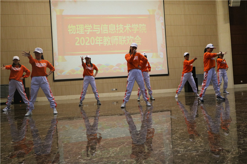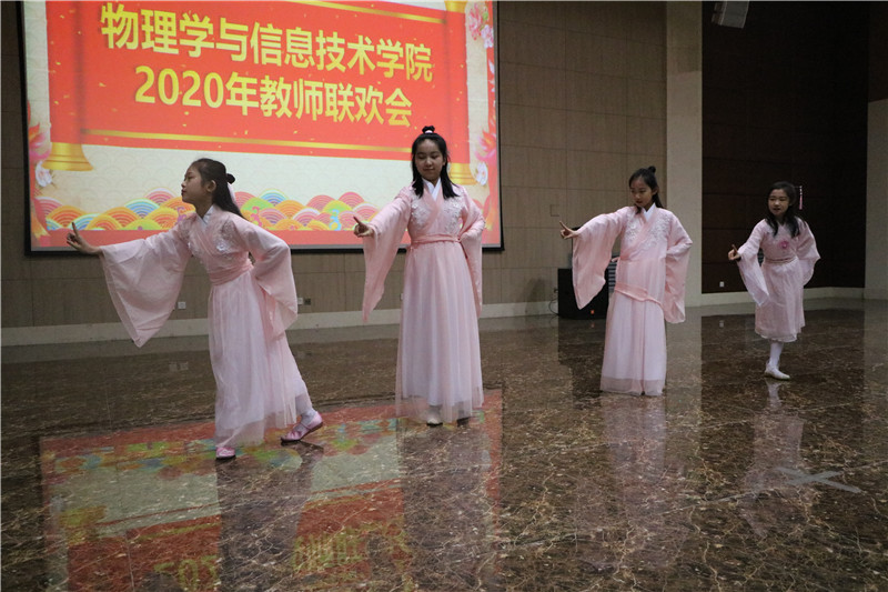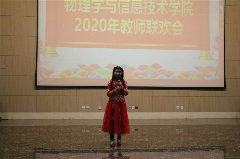 由学院老师、孩子们精心准备的19个节目,形式丰富多彩、赏心悦目,有集体舞、歌伴舞、相声、独唱、朗诵和三句半等。配乐诗朗诵《中国话》深情款款,温馨感人;学院办公室《三句半》,讲述了心系师生、做好保障服务故事;《西湖春》四位女教师舞蹈婉转幽美。喜剧《胖子大作战》、单口相声《找搭档》让大家笑声不断;学工组全体老师青春活力舞蹈引得观众叫好连连。两次抽奖环节更使联欢会现场欢腾不已。联欢会在基础物理教研室和教工第四党支部齐唱《众人划桨开大船》中落下帷幕。