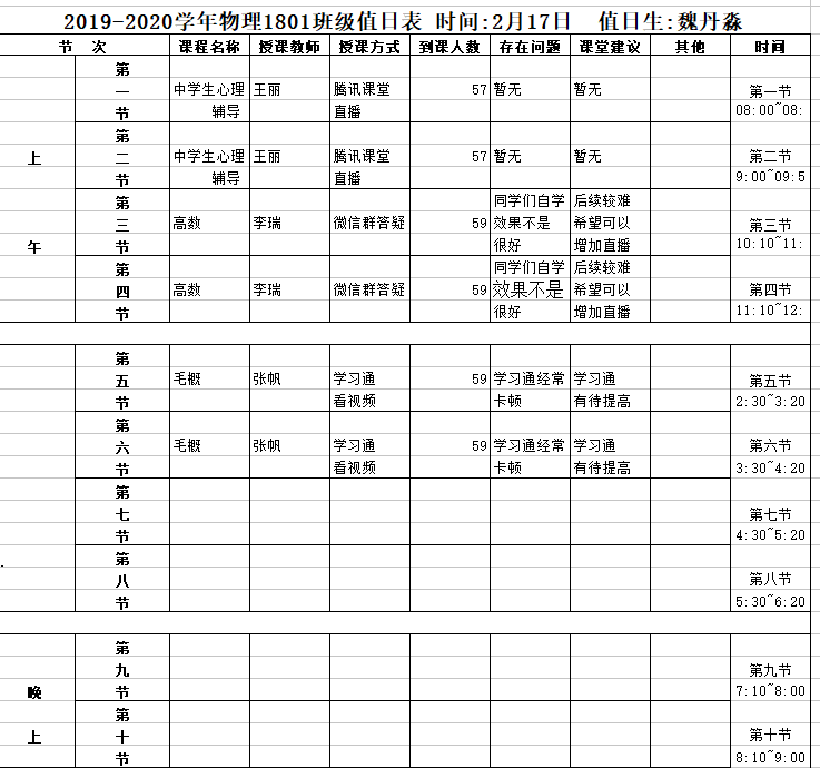 2月8日,确定开课方式,联系学生,核对学生课表,为每门课程每个班级遴选课代表,建立师生联系方式,为师生联系开课做好支持。