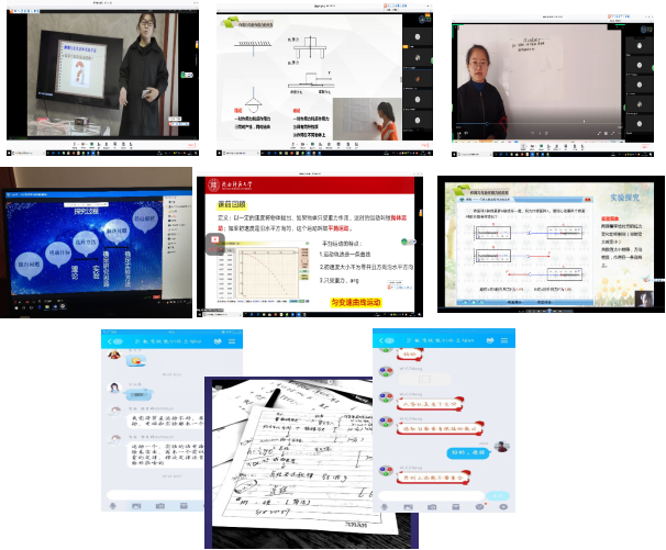 学生积极参与:作为准教师的师范生,关注课堂教学实践,提升个人专业素养,提升教学实践能力是他们在大学期间必须要做到的。在推迟开学期间,同学们积极利用各种网络技术,克服各种困难,在指导教师的引导下,有计划、有方法、有手段的参与到教学技能提升训练过程中。有同学使用了电视投屏软件,使大家能直接观察他讲课的具体过程,有身临其境的感觉;有同学使用软件进行视频编辑,将录制好的板书授课部分和PPT播放部分进行合成,达到了很好的视频展示效果,同时将制作方法共享使同学们都能受益;有同学利用家里的器材制作了简单的道具完成了一系列的小实验,使自己的讲课视频更加生动有趣;有同学由于条件限制无法制作PPT文档,通过在A4纸拼成的“黑板”上完成了自己的模拟授课过程。